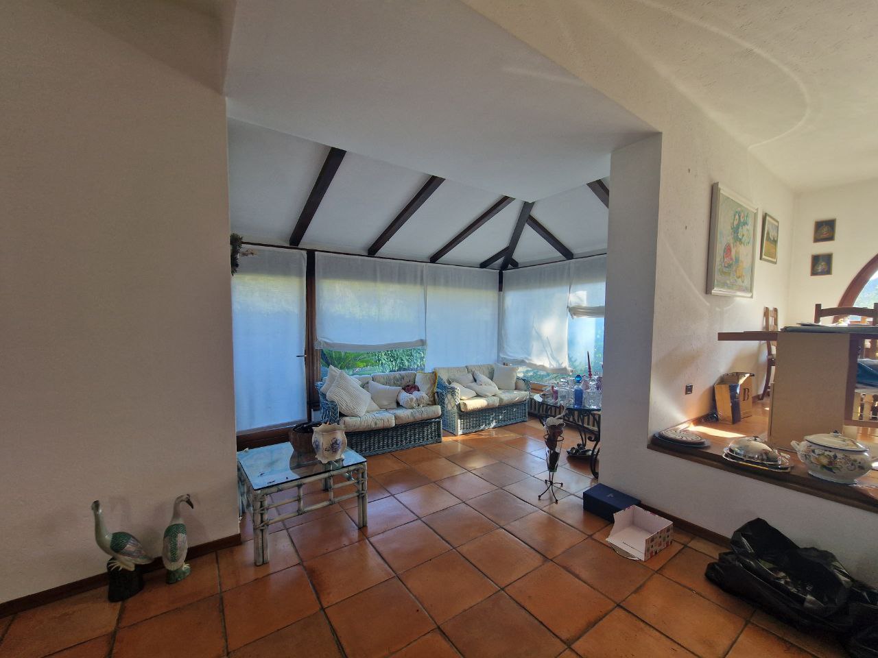 Soldano – Villa with large garden We offer for sale a sunny villa, of generous size, on several levels and surrounded by about 1,500 square meters of well-kept outdoor spaces. Ground floor: entrance hall, bright open space living area with living room and open kitchen, hallway with double bedroom, bedroom / study and bathroom with window; First floor: hallway, three bedrooms, bathroom with window and loggia balcony; Attic floor with window on two sides accessible from the first floor via a retractable staircase; Basement: large cellar, technical room/warehouse and laundry room. Outside there is a large paved courtyard that can also be used as a parking area for several cars, porch also accessible directly from the kitchen with barbecue area and wood-burning oven, large canopy used as covered parking spaces and woodshed, garage and flat garden, the whole property is fenced. The villa, in excellent internal and external condition, is characterized by bright rooms, custom-made fixtures, medieval-style architectural details and both gas and hydro-pellet heating. The property is located in a convenient position, 300 meters. from the center of Soldano and only 5 km from the sea, which can be traveled on a flat road. R.5019
