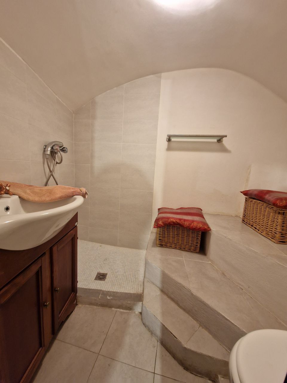 In the heart of the historic village of Dolceacqua, along the suggestive Via Castello, stands this charming Ligurian residence spread over five floors and with about 150 m² of living space. The typical arches and the Mediterranean atmosphere give the building a unique character, enriched by the possibility of organizing the rooms in a versatile way thanks to the two independent entrances and the subdivision into two apartments. The main house welcomes you with a warm living room with a wooden fireplace and a kitchen with a traditional taste. Upstairs there is a large bathroom with bathtub and a bedroom with a practical wardrobe area. Going up further, an additional bedroom with private bathroom offers maximum privacy and comfort. The attic houses the laundry room and gives access to a romantic panoramic terrace of about 10 m², perfect for relaxing while enjoying the view of the village. The guest apartment, completely independent, has a living room with sleeping area, kitchen and bathroom with shower: an ideal solution to host friends, family or for independent use. The property is connected to the public gas network and equipped with a gas boiler for heating and hot water. A cellar room of about 10 m², located in the building opposite, ideal for storing bicycles or equipment, completes the offer. Dolceacqua enchants with its picturesque atmosphere, the services at hand and the surrounding landscape made up of hills, vineyards and paths. The beaches of Bordighera and Ventimiglia can be reached in just 15 minutes, Sanremo in about 35, Monaco in 45, while the international airport of Nice is about an hour away by car. R.5053