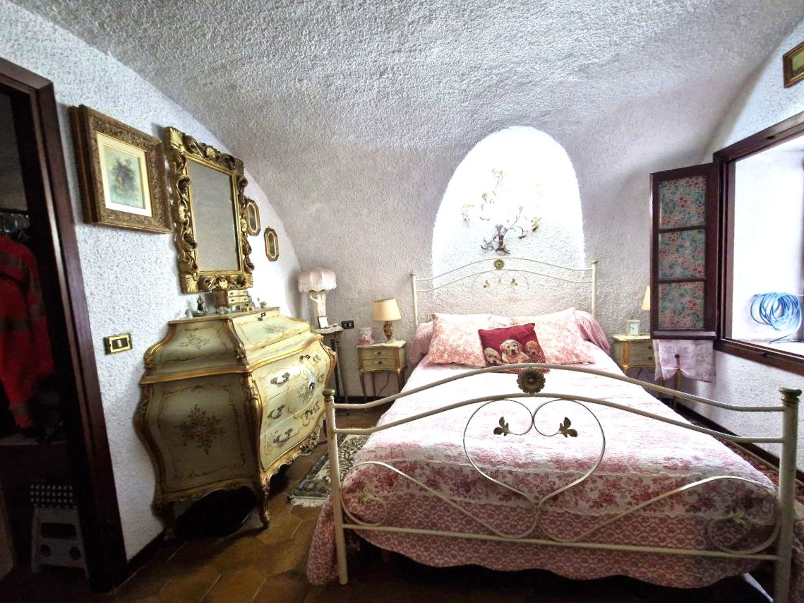In the heart of the historic village of Dolceacqua, along the suggestive Via Castello, stands this charming Ligurian residence spread over five floors and with about 150 m² of living space. The typical arches and the Mediterranean atmosphere give the building a unique character, enriched by the possibility of organizing the rooms in a versatile way thanks to the two independent entrances and the subdivision into two apartments. The main house welcomes you with a warm living room with a wooden fireplace and a kitchen with a traditional taste. Upstairs there is a large bathroom with bathtub and a bedroom with a practical wardrobe area. Going up further, an additional bedroom with private bathroom offers maximum privacy and comfort. The attic houses the laundry room and gives access to a romantic panoramic terrace of about 10 m², perfect for relaxing while enjoying the view of the village. The guest apartment, completely independent, has a living room with sleeping area, kitchen and bathroom with shower: an ideal solution to host friends, family or for independent use. The property is connected to the public gas network and equipped with a gas boiler for heating and hot water. A cellar room of about 10 m², located in the building opposite, ideal for storing bicycles or equipment, completes the offer. Dolceacqua enchants with its picturesque atmosphere, the services at hand and the surrounding landscape made up of hills, vineyards and paths. The beaches of Bordighera and Ventimiglia can be reached in just 15 minutes, Sanremo in about 35, Monaco in 45, while the international airport of Nice is about an hour away by car. R.5053