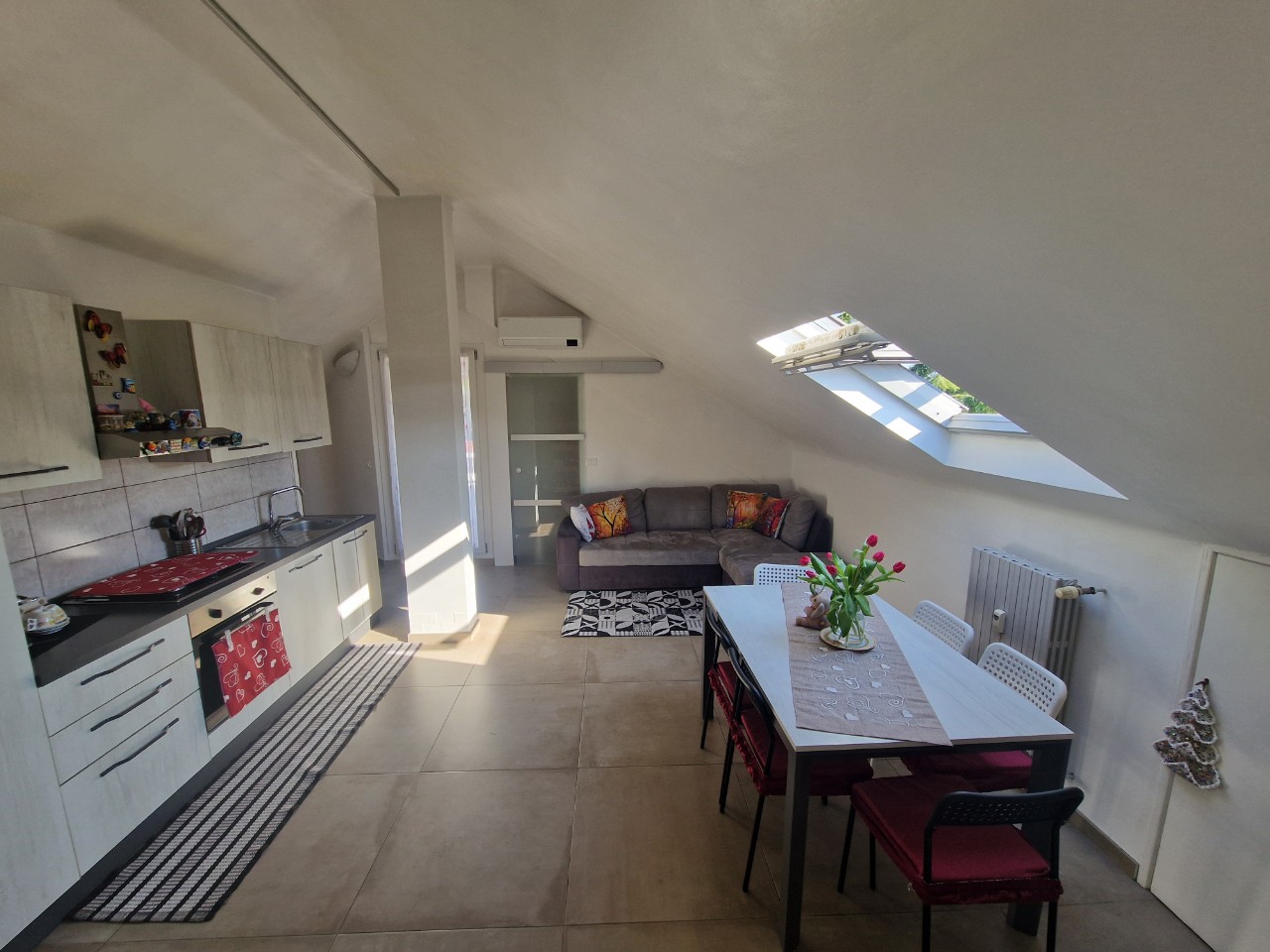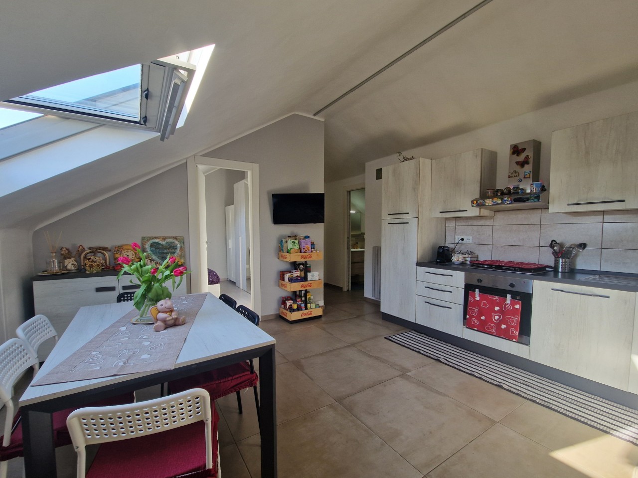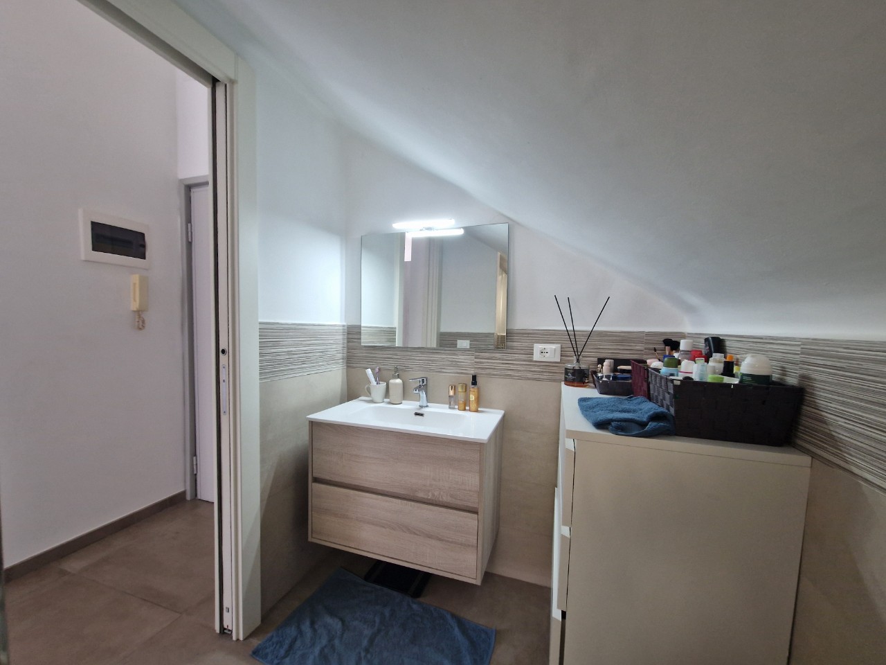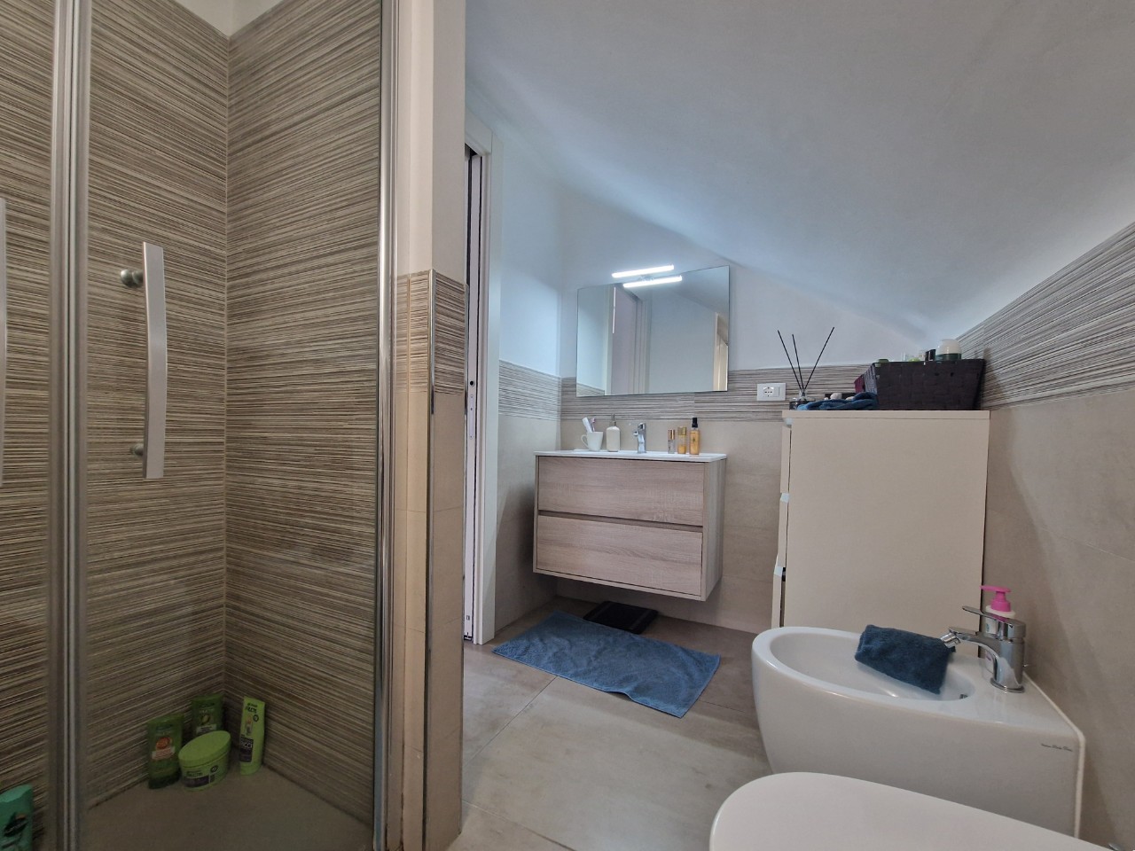 In the heart of Bordighera, in a quiet and private setting but within walking distance of all services, we offer for sale a charming attic apartment of about 60 square meters. The entrance opens onto a bright living room with open kitchen, a welcoming and well-distributed environment. The sleeping area includes a double bedroom, a bathroom and a functional wardrobe room. A large additional room of about 26 square meters has been cleverly enhanced to create a second bedroom with bathroom, thus offering versatile and well-organized spaces. The pride of the property is the livable and private terrace, from which you can enjoy a pleasant open view of the surroundings, perfect for moments of relaxation in total tranquility. Located on the fourth floor of a building with elevator to the third, the apartment is easily accessible via two short flights of stairs. Equipped with hot/cold air conditioning in all rooms and central heating with meter. Ref.5102