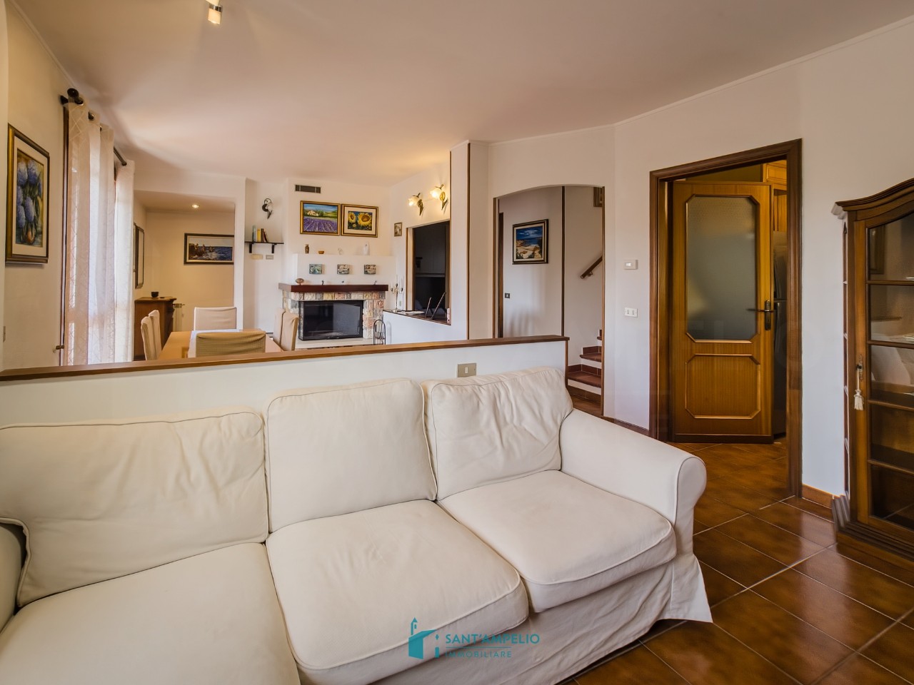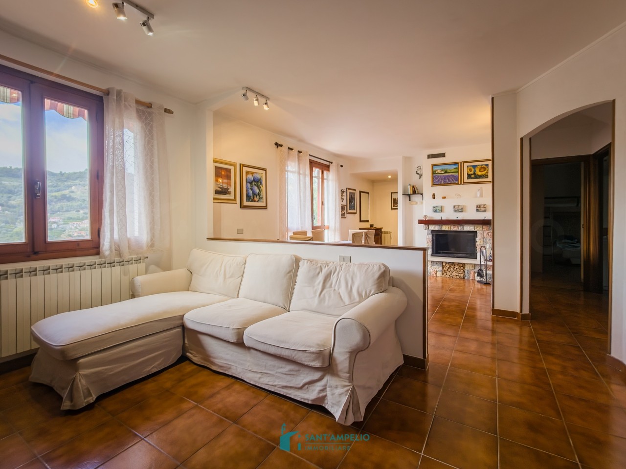 Sulla prima collina di San Biagio della Cima, in posizione soleggiata e con ottima esposizione, si propone in vendita una villa in eccellenti condizioni. L’accesso alla proprietà avviene tramite cancello carrabile automatizzato; percorrendo un viale di circa 100 metri si raggiunge l’abitazione principale, che si sviluppa su una superficie di circa 135 mq distribuiti su due livelli. Al piano principale si accede tramite una scala esterna che conduce a una loggia d’ingresso. Gli ambienti interni comprendono un disimpegno, un ampio soggiorno con camino ventilato e zona pranzo, entrambi con accesso a un balcone che si estende lungo tutto il perimetro esposto a ovest, una cucina abitabile, un ulteriore disimpegno, una camera da letto e un bagno. Una scala interna collega al piano superiore mansardato, composto da disimpegno, due camere, un cucinotto e un bagno. I due livelli, oltre a essere collegati internamente, dispongono anche di ingressi indipendenti, offrendo così la possibilità di utilizzo separato. Al piano terra si trovano circa 85 mq adibiti a taverna e locali accessori, tra cui lavanderia, cantina e ulteriori spazi versatili, ideali come palestra o area hobby. La proprietà comprende inoltre una corte di circa 300 mq, dove sono presenti posti auto coperti e una zona esterna attrezzata per la bella stagione, dotata di forno, barbecue e un’ampia tavolata in muratura con sedute, perfetta per accogliere amici e familiari in ogni periodo dell’anno. Completa la proprietà un terreno circostante di circa 1.500 mq, completamente recintato e piantumato con 33 ulivi in produzione. Rif. 5031
