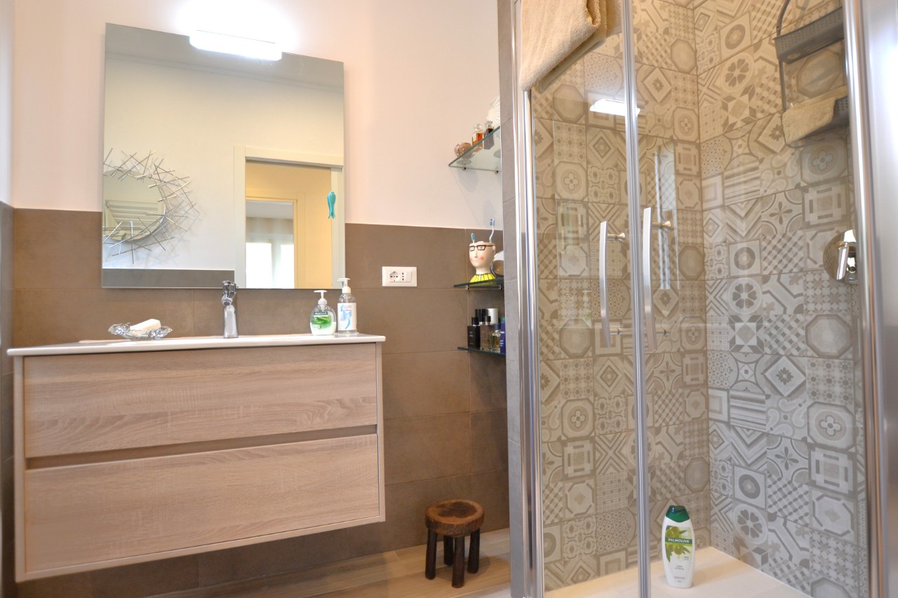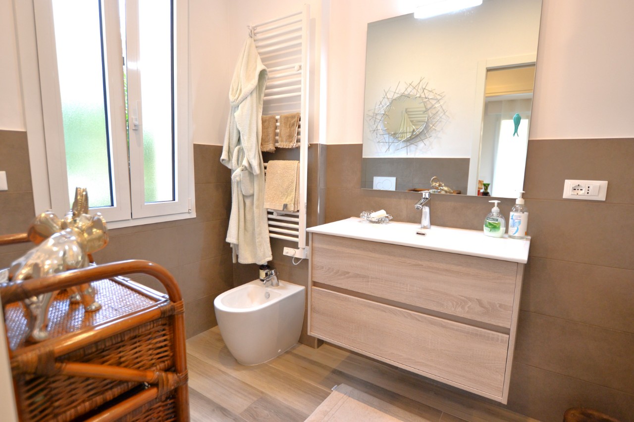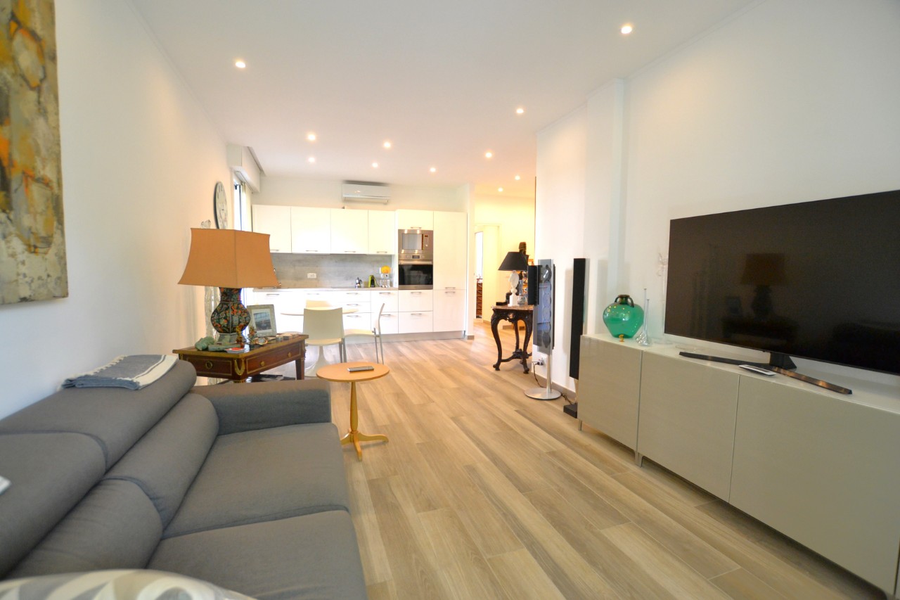 Bordighera, in contesto tranquillo e residenziale, a soli 500 mt. dal mare, viene proposto in vendita appartamento trilocale, appena ristrutturato con materiali di qualità. L'alloggio situato al primo piano di piccola palazzina servita da ascensore, ha una superficie commerciale di circa 80 mq. si compone di ingresso in zona giorno con cucina a vista, disimpegno notte, con due camere e un bagno finestrato, piccolo ripostiglio/lavanderia e terrazzo perimetrale su due lati, ampio e vivibile al quale si accede sia dalla zona notte che dalle camere. L'offerta comprende un box auto e la cantina. R.4351 Bordighera, in a quiet and residential setting, just 500 meters. from the sea, it is proposed for sale three-room apartment, just renovated with quality materials. The accommodation located on the first floor of a small building served by a lift, has a commercial area of about 80 square meters. it consists of entrance into the living area with open kitchen, night hallway, with two bedrooms and a windowed bathroom, small closet / laundry room and perimeter terrace on two sides, large and livable which is accessed both from the sleeping area and from the bedrooms. The offer includes a garage and the cellar. R.4351