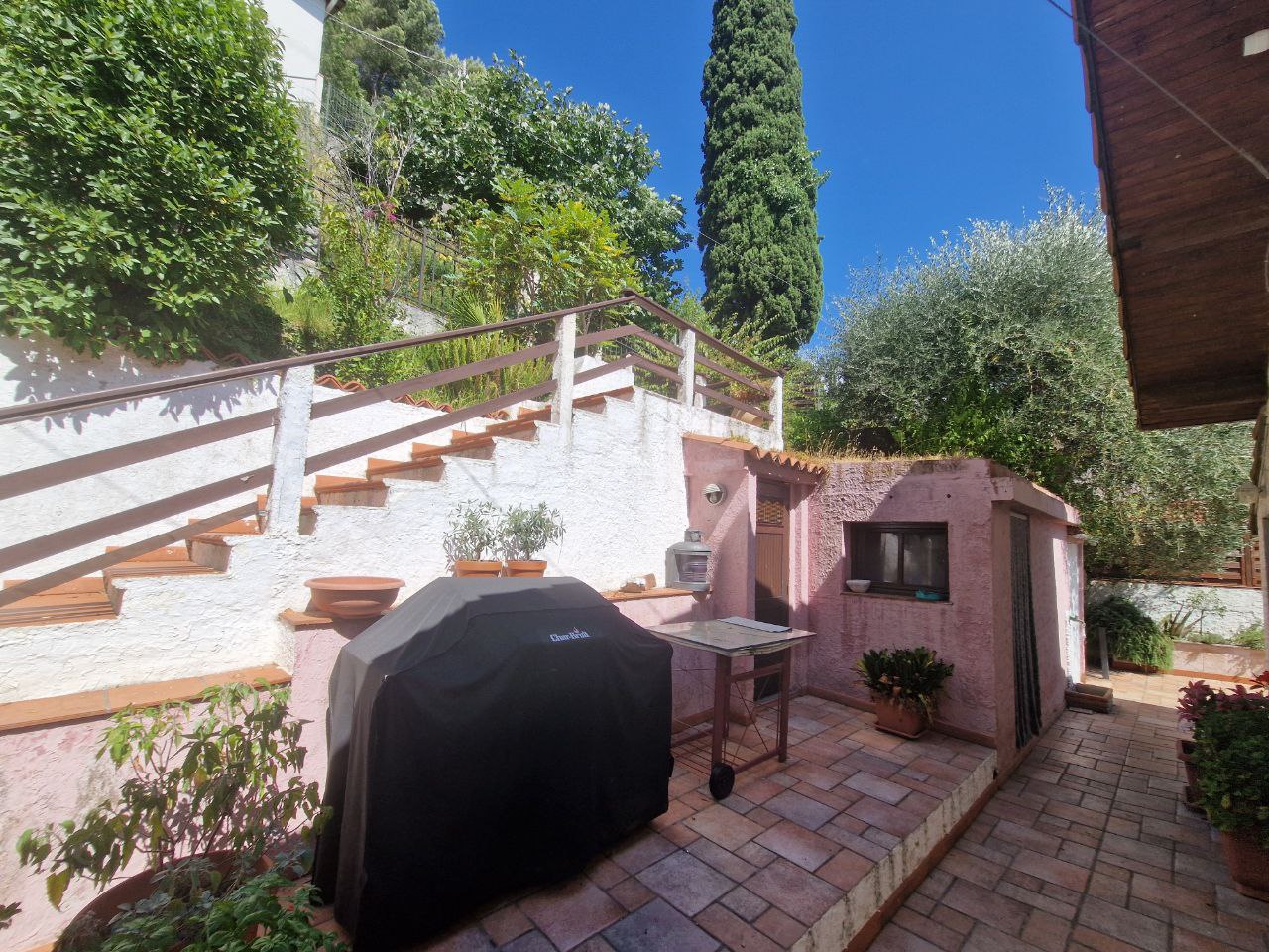 sulla prima collina di Camporosso con splendida vista sulla vallata e il mare, proponiamo villa di ampia metratura, circa 150 mq. commerciali disposti su due livelli suddivisi in zona giorno al piano terra, composto da doppio ingresso di cui uno attraverso balcone verandato, disimpegno, ampia zona di soggiorno e pranzo con cucina vista e un bagno, terrazza coperta e vivibile per trascorrere piacevoli momenti con amici e famiglia; piano seminterrato libero su tre fronti, a cui si accede sia tramite scala interna che da scala esterna; a questo livello si trova la zona notte costituita da due camere matrimoniali e una singola disimpegnate da corridoio, un bagno con doccia e vasca e ulteriori locali adibiti a deposito e/o dressing. Nella corte circostante si trova un comodo deposito/tavernetta oltre al locale lavanderia e ripostigli. La proprietà è coronata da un terreno di circa 1500 mt. in parte utilizzato come orto. I posti auto coperti e di proprietà si trovano a pochi passi dall'ingresso. Residenza ideale per chi ama la quiete. R.4925